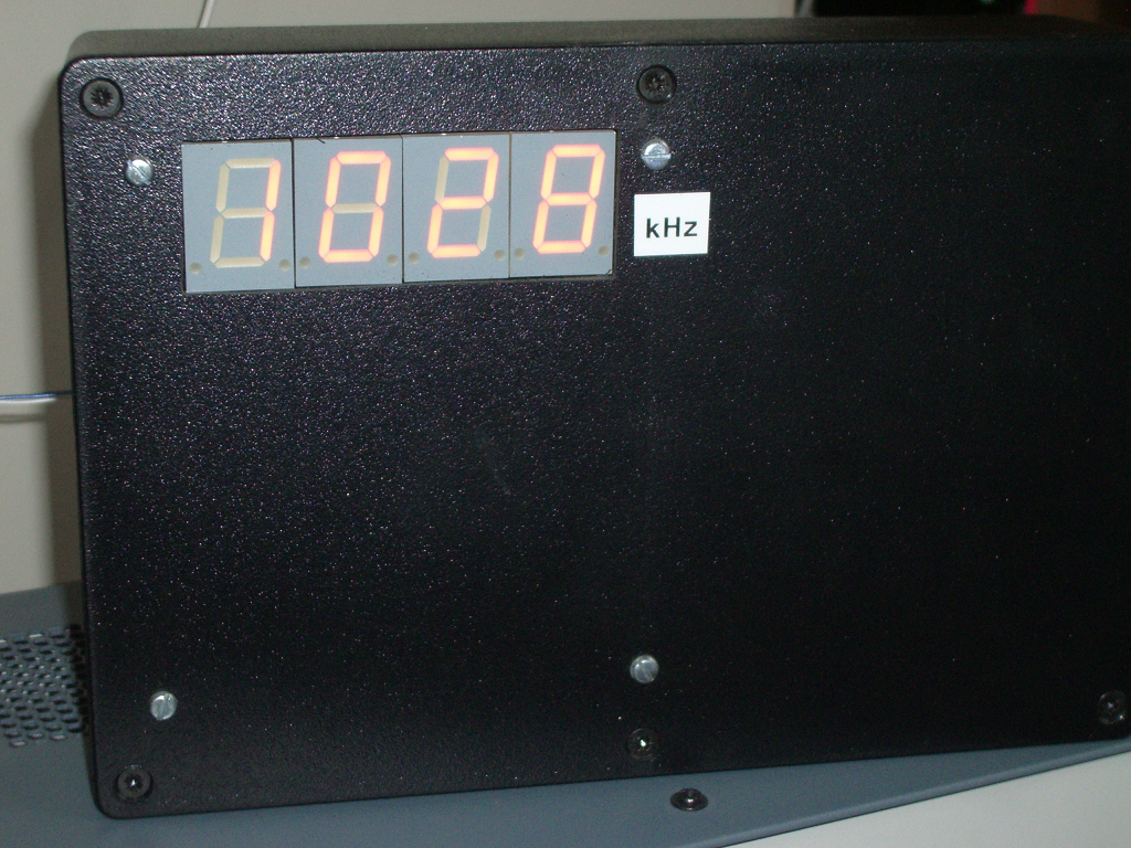 Our local oscillator signal is present even when there is no signal being received. We just need to subtract the intermediate frequency. We do this by preloading the counter with (10000 – the IF, say 460). When the counter starts, the first 460 pulses set the reading back to zero, (i.e 10000 with the most significant 1 not being visible). The remainder of the pulses then count to the value of the frequency being received.